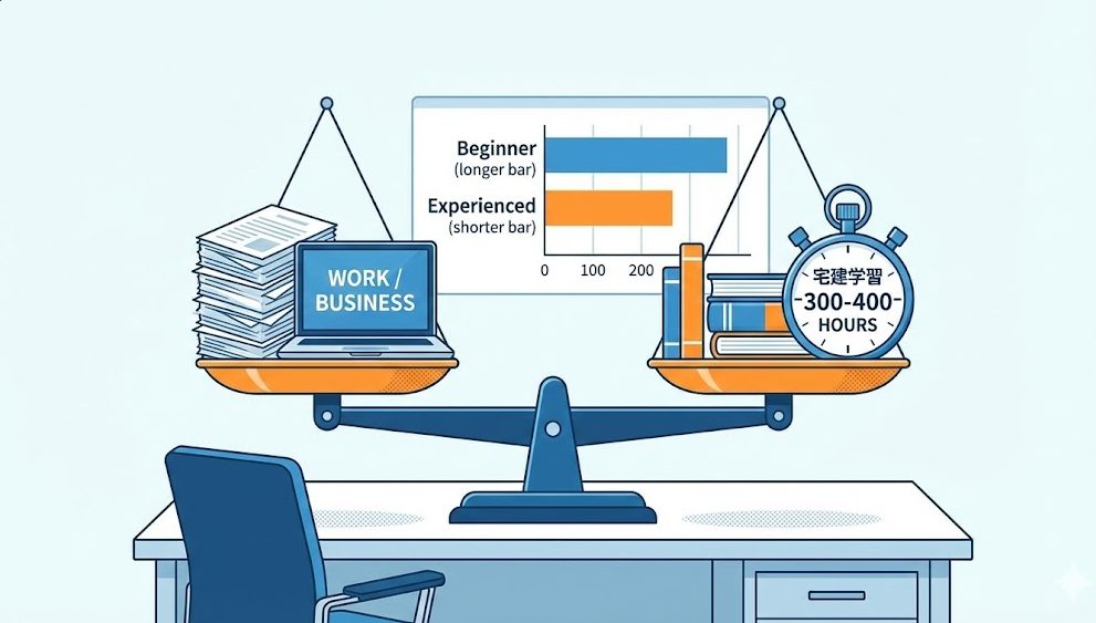 - 不動産実務経験者・法学部卒:200〜300時間(基礎知識がある分、演習に特化できる)